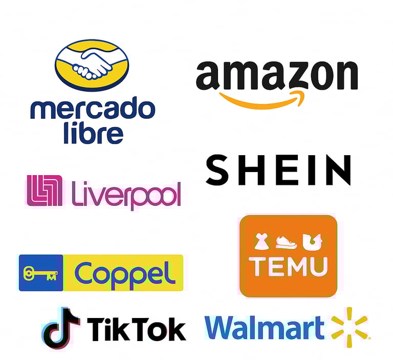 Mercado Libre/Amazon/Shein/Temu/Tiktok MX 等平台本土店入驻、商品本地化、运营托管与广告投放。